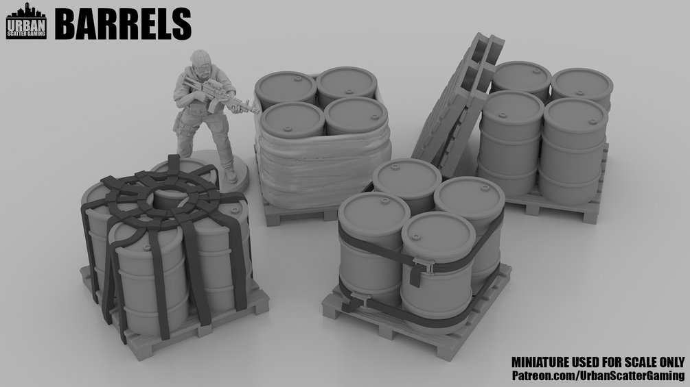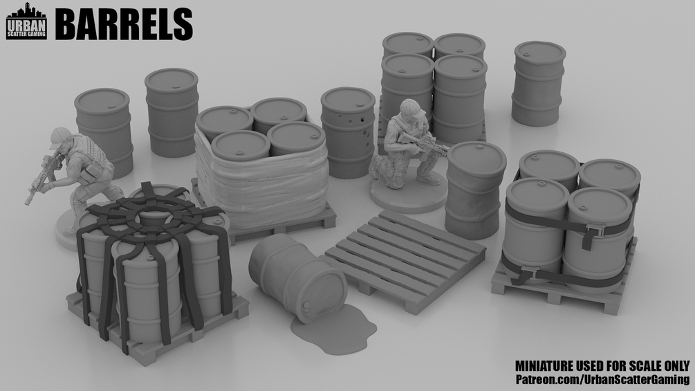 This detailed scatter pack is designed to bring variety, realism, and extra depth to your terrain, whether you're building urban environments, industrial zones, or military compounds. From mission objectives to simple cover, these barrels are versatile tools for your tabletop toolkit.