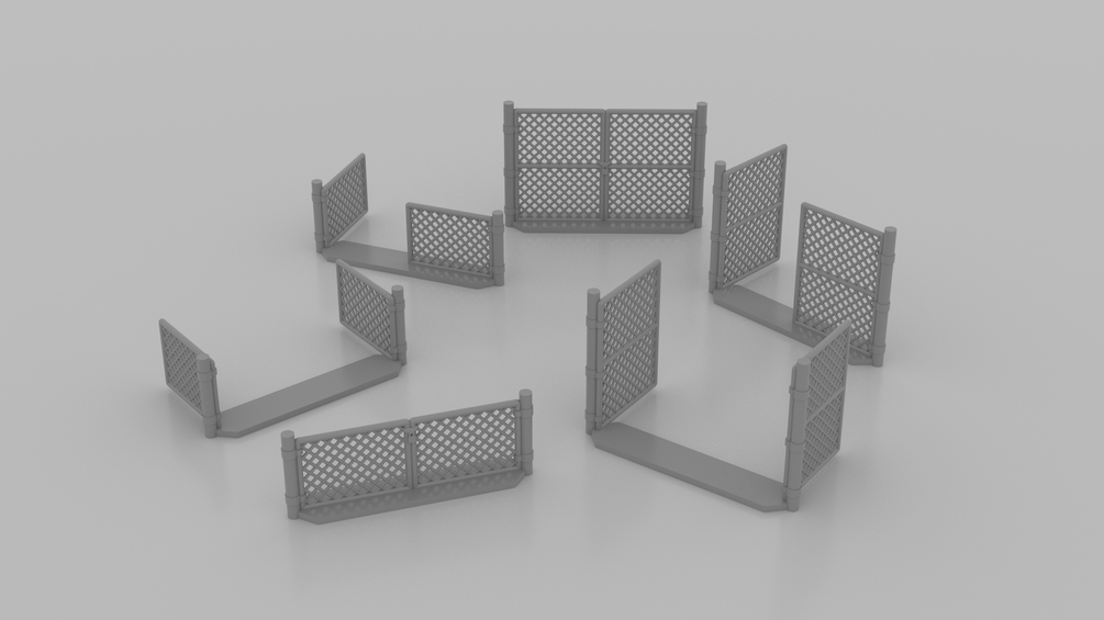 - Low Chain Link Fence – Ideal for residential or garden setups. Includes a static gated section for visual interest.
