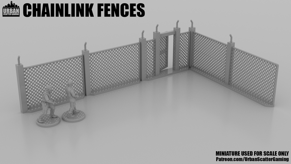 Secure the perimeter with this highly versatile set of Chain Link Fences, designed to fit seamlessly into a wide variety of tabletop environments. Whether you're fencing off a suburban garden, locking down a military compound, or building a barricade in a post-apocalyptic warzone, this pack has the detail and flexibility you need.