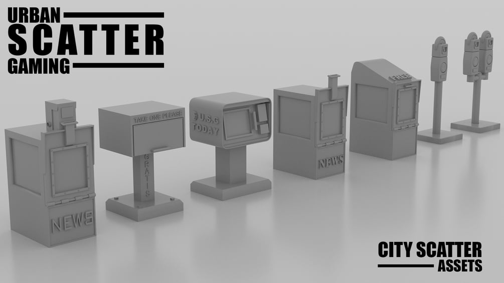 I present to you my City scatter assets. A large pack of items perfect for any modern or post apocalyptic setting. It contains all you need to detail you battle maps or diorama's with generic City Scatter and clutter.