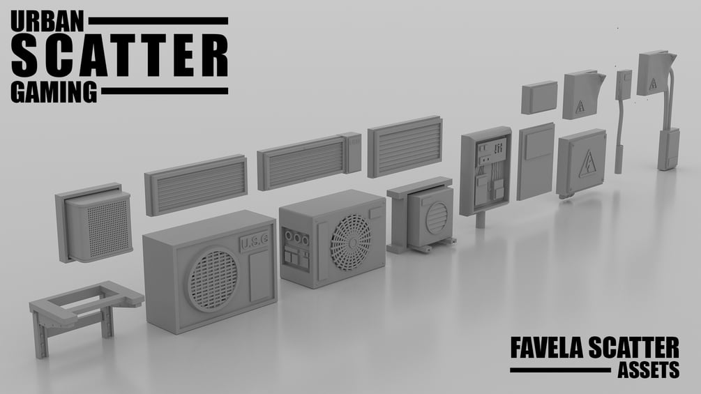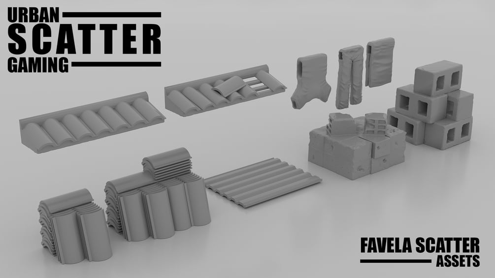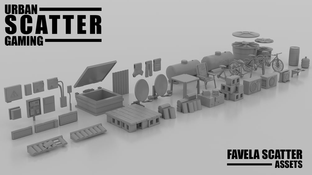 I present to you my Favela/Slum Scatter assets. Perfect for any modern or post apocalyptic setting originally designed for a Favela/Slum scenario but could be used in any urban setting. It contains a host of everyday objects that can be used to detail your scenery or diorama's.
