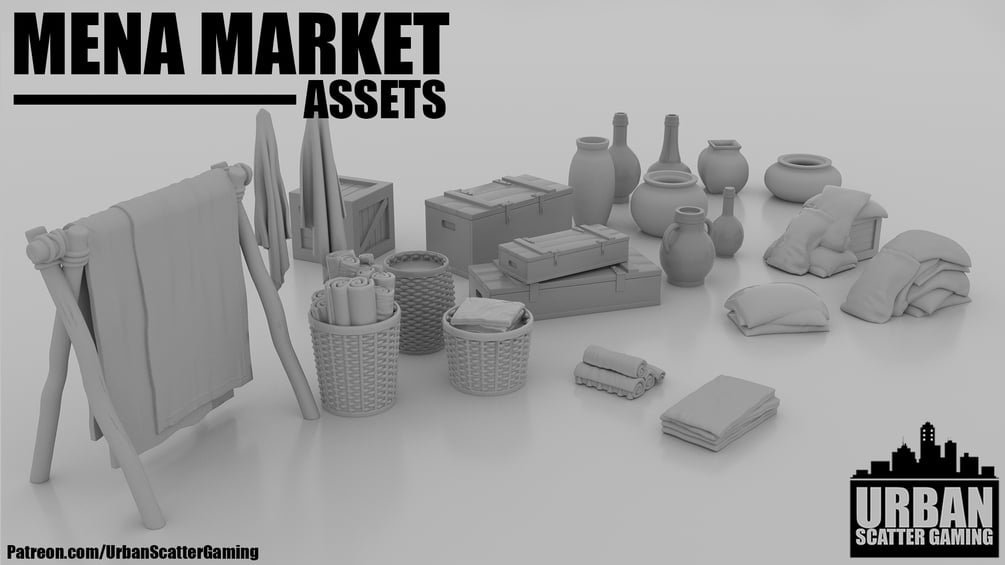 Introducing the MENA Market Assets – Bring your tabletop game board or diorama to life with this immersive Middle Eastern market-themed 3D printable set. This detailed pack includes everything you need to add authenticity and atmosphere to your scenes, from market gazebos and carts to baskets, food sacks, boxes, tables, and umbrellas. Perfect for wargaming scenarios or building stunning dioramas, these versatile pieces add realism and depth to any setting, enhancing gameplay or display with ease.