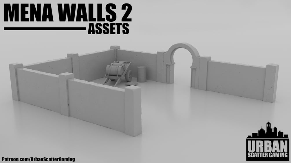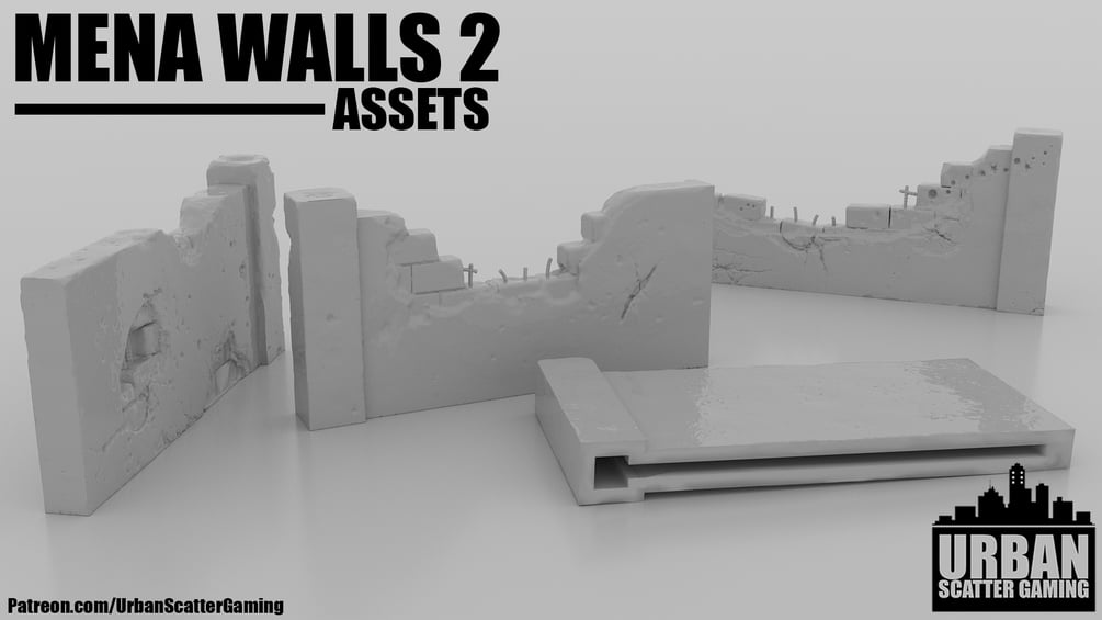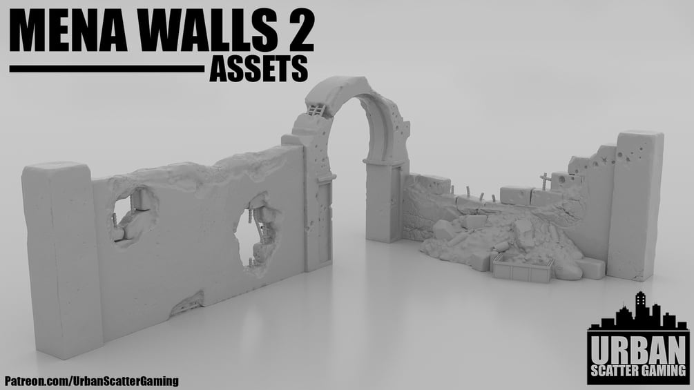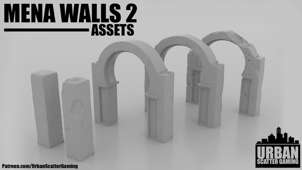 Introducing the MENA Wall 2 Assets – a versatile wall set ideal for miniature tabletop terrain and dioramas. Inspired by references from the Battle of Fallujah, these walls seamlessly fit Middle Eastern-themed boards while also adapting to various other settings. With five variations of block walls, each in different stages of damage, you can create anything from a pristine, untouched structure to a heavily damaged, war-torn wall. Pair these up with the accompanying decorative arches, pillars, and rubble piles to build a visually stunning and dynamic piece of tabletop terrain.