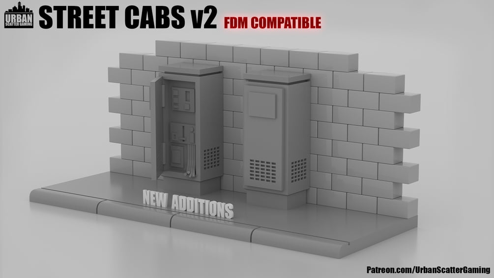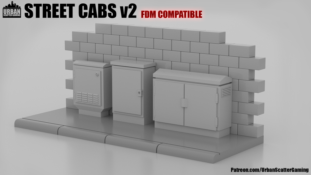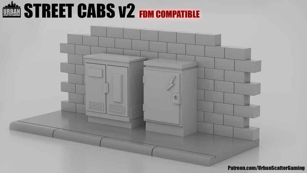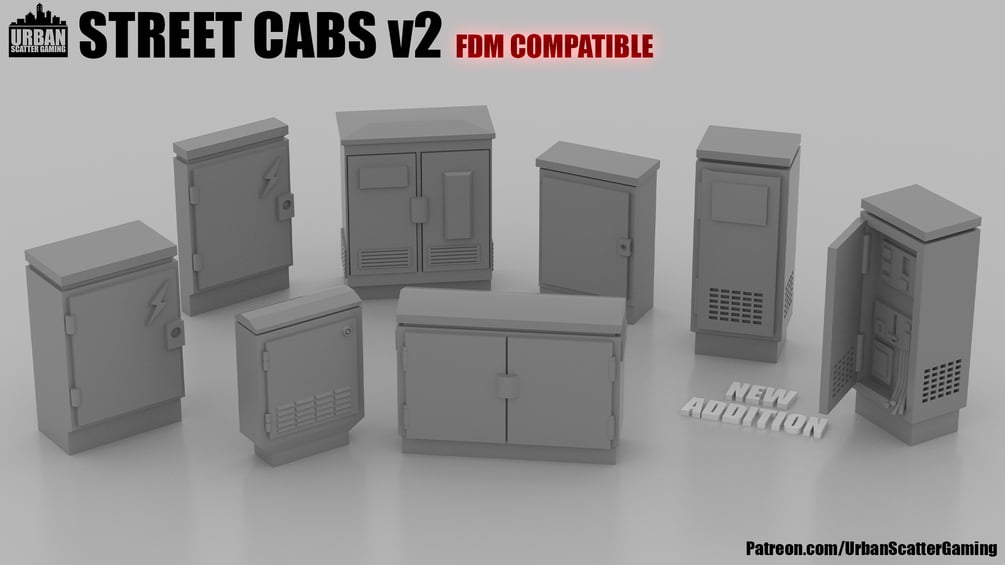 Designed for 28mm tabletop gaming, this pack contains a set of highly versatile street utility cabinets commonly found lining roads, alleys, and industrial areas. These pieces are perfect for adding believable detail, cover, and visual clutter to any urban environment.