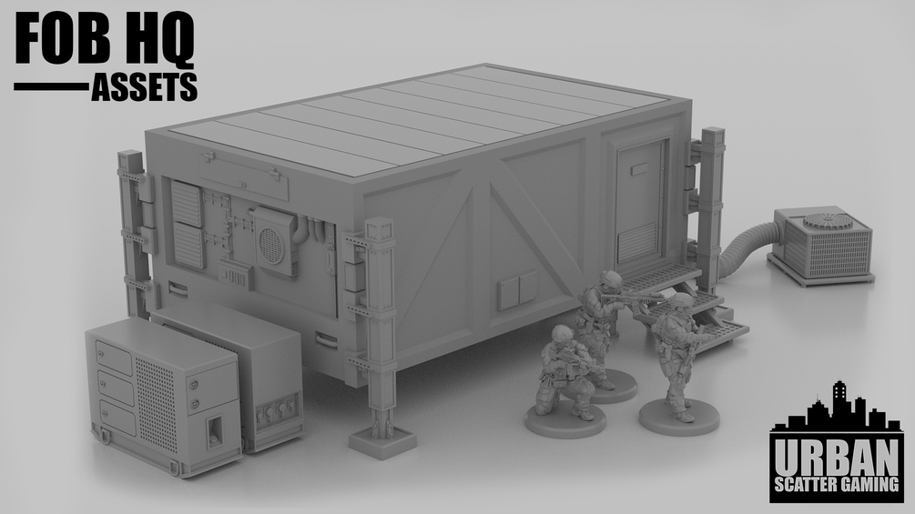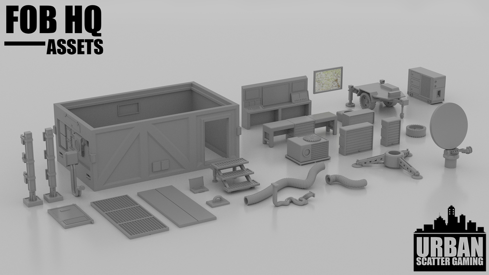 I present to you my FOB HQ assets. This pack contains models to flesh out any modern forward operating base in your wargames. These items focus mainly on Command & Comms and include some great pieces to use as objectives or decoration.