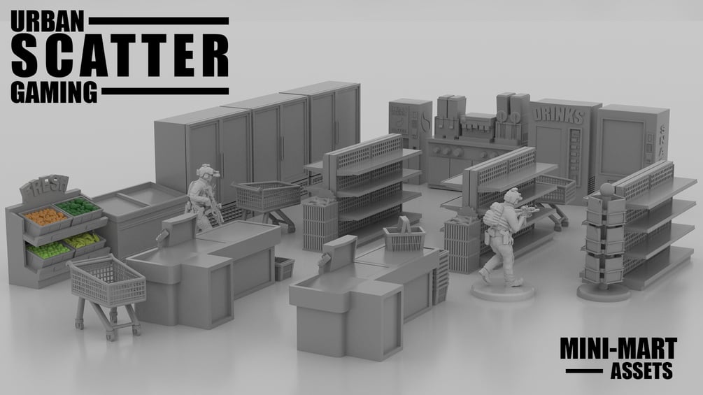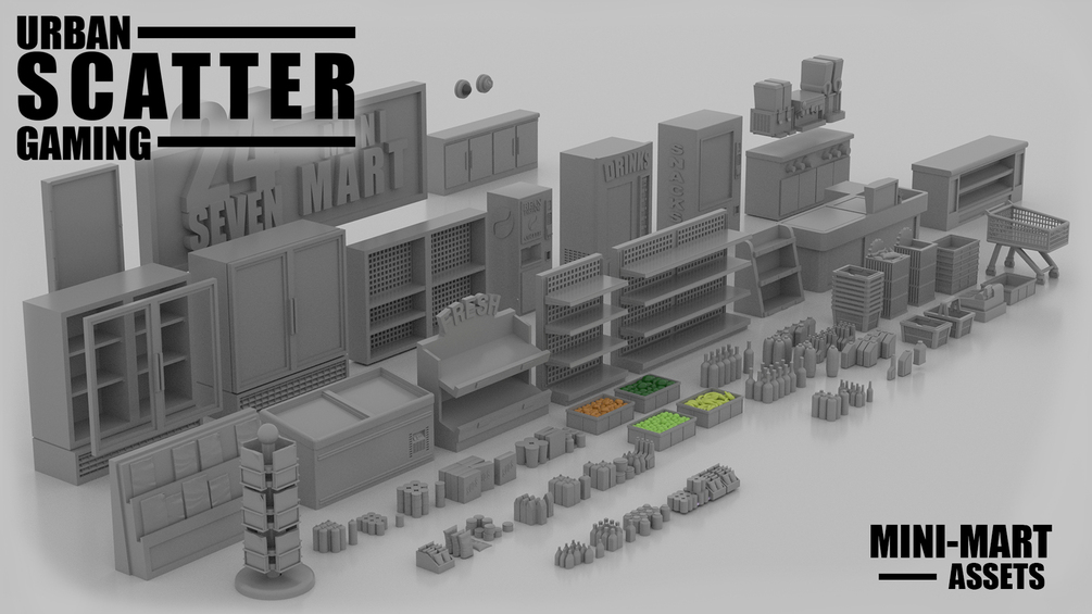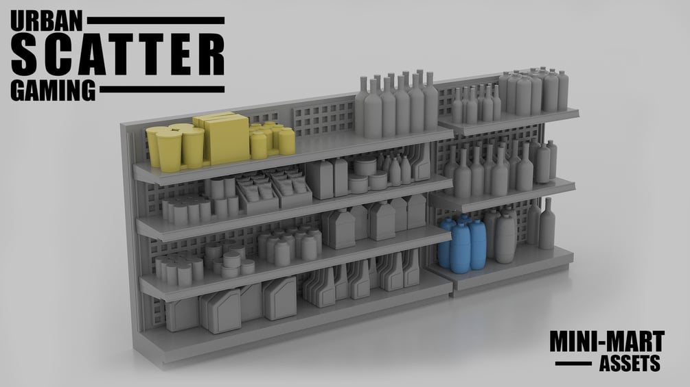 I present to you my Mini-Mart/Supermarket assets. A large pack of items perfect for any modern or post apocalyptic setting. It contains all you need to detail your Gas stations, supermarkets or shops with shelving and produce.