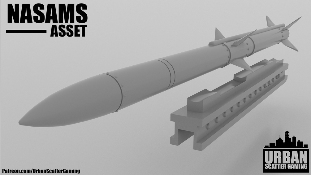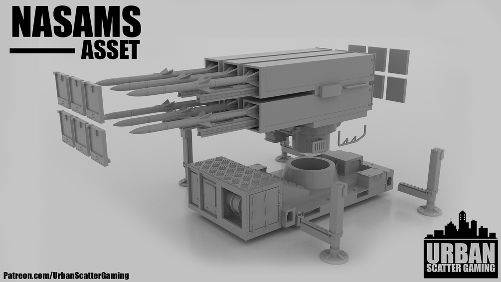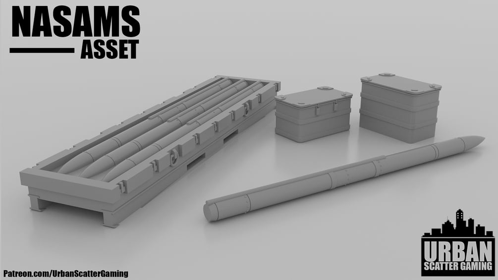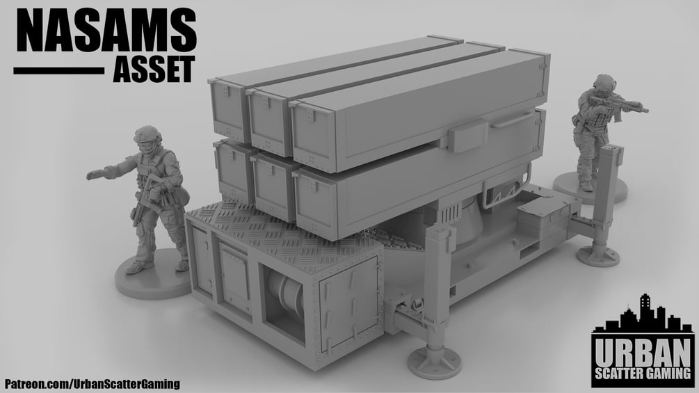 The miniatures used in the renders are the awesome work of Black Hills Games. His US units are perfect accompaniment for the NASAMS system. Check them out on his Gumroad store Black Hills Games (gumroad.com)